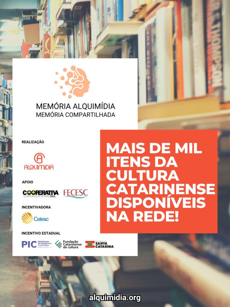 A Alquimídia concluiu a catalogação de mais de mil itens de seu acervo, que está disponível para consulta e download em seu site www.alquimidia.org. Esta ação faz parte do projeto Memória Alquimídia – Memória Compartilhada, que foi viabilizado por meio do Programa de Incentivo à Cultura, o PIC, do Governo do Estado de Santa Catarina, aprovado pela Fundação Catarinense de Cultura e com incentivo da Celesc.